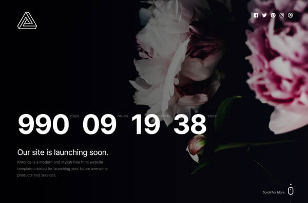 Khronos is a creative pack of coming soon template pages. Its elegant and clean design makes it perfect for creative people, corporate, agency or anyone who is currently building their site and want to show a coming soon page in a creative way. Khronos is available in three style variations: static, slideshow, and particle background. It is fully responsive and retina ready, looks great on any screen and devices.