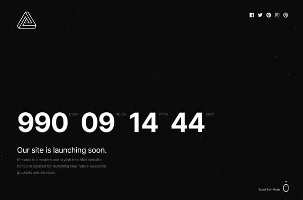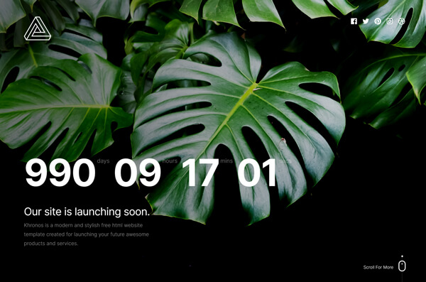 Khronos is a creative pack of coming soon template pages. Its elegant and clean design makes it perfect for creative people, corporate, agency or anyone who is currently building their site and want to show a coming soon page in a creative way. Khronos is available in three style variations: static, slideshow, and particle background. It is fully responsive and retina ready, looks great on any screen and devices.